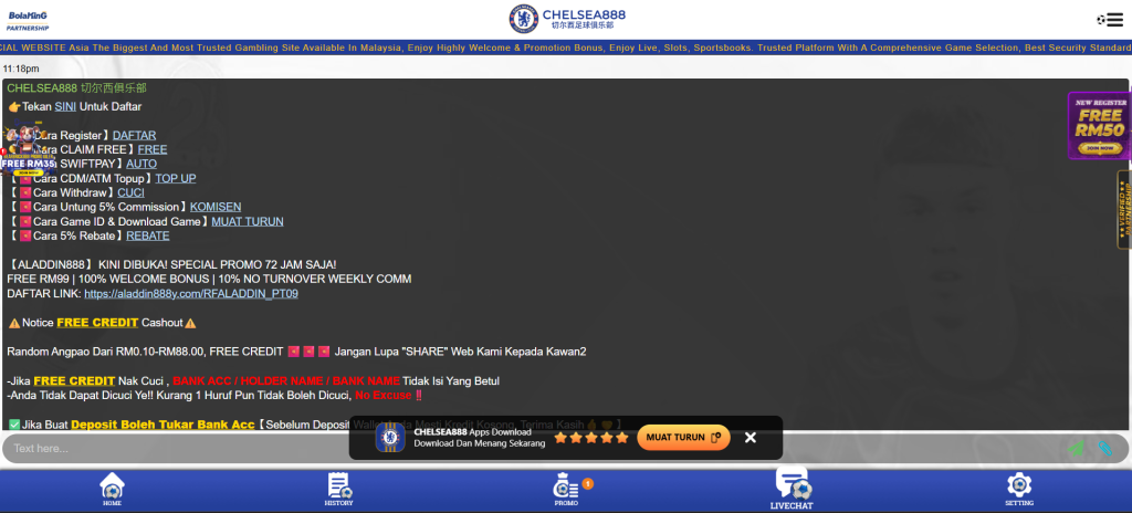 Chelsea888 is an online casino brand operating under the popular 888 ecosystem of partnerships, which is known across Malaysia and Southeast Asia. The platform has positioned itself as both a sports-centric casino and a full entertainment hub, offering a wide variety of games and promotions. Unlike many smaller operators, Chelsea888 carries a professional reputation backed by security certificates, modern payment integrations, and a player-first bonus system.