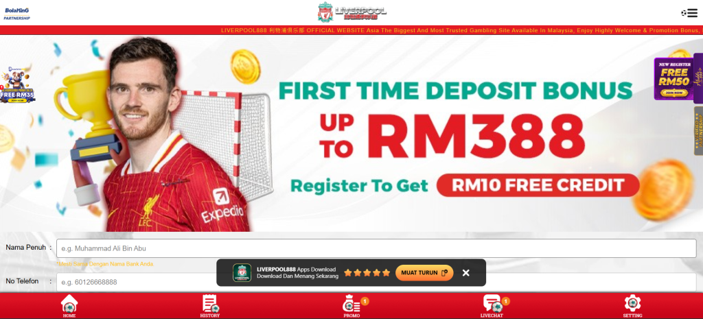 Among the many online casinos in Malaysia, Liverpool888 stands out with its bold branding and strong partnership under the Bolaking Partnership Network. Inspired by passion, loyalty, and winning culture, Liverpool888 combines a professional platform with generous promotions to deliver a complete experience for players.
