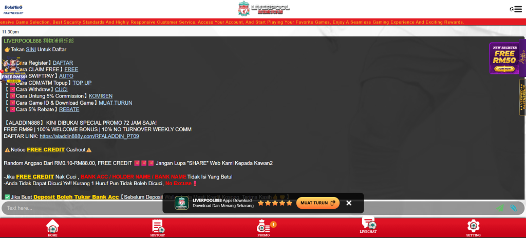 With providers like JILI, Playtech, and Pragmatic Play backing its game library, alongside promotions such as free credits, unlimited slot bonuses, and Angpao giveaways, Liverpool888 continues to attract Malaysian players who value both fun and trust.