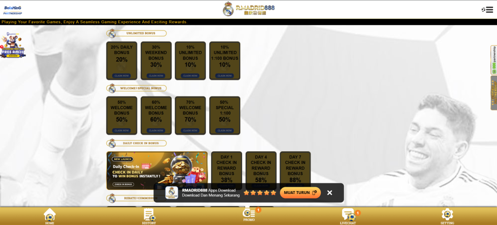Promotions are one of Rmadrid888’s strongest features, designed to reward both new and loyal members. Current offers include: